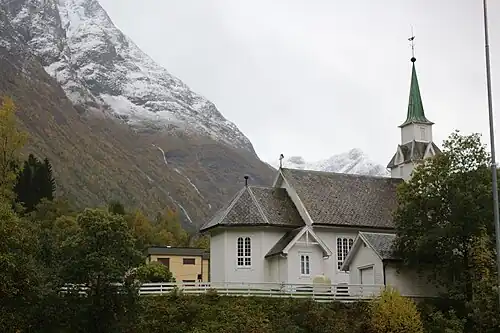 Bjørke Church (Norwegian: Bjørke kyrkje, also known as Storfjorden kyrkje) is a parish church of the Church of Norway in Volda Municipality in Møre og Romsdal county, Norway. It is located in the village of Bjørke at the innermost end of the Hjørundfjorden (which is also known as the Storfjorden). It is the church for the Storfjorden parish which is part of the Søre Sunnmøre prosti (deanery) in the Diocese of Møre. The white, wooden church was built in a long church design in 1920 using plans drawn up by the architect Mathias Brække. The church seats about 200 people.[1][2] The church was consecrated on 16 September 1920 by Bishop Peter Hognestad.[3]