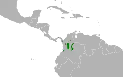 The black-headed brushfinch was often treated as a subspecies of the stripe-headed brushfinch (A. torquatus), but the distributions of the two approach each other closely in Colombia with no evidence of intergradation.[5] In addition, the Costa Rican brushfinch, A. costaricensis has often been treated as a subspecies of the stripe-headed brushfinch, or a subspecies of the black-headed brushfinch,[5] but based on ecology, morphology, song, and molecular work, it has recently been suggested that A. costaricensis is worthy of treatment as a species.[6] In that case, the black-headed brushfinch would only include the subspecies tacarcunae, and be restricted to Colombia and eastern Panama.[6]