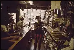 African-Americans also have a length history of ownership in music-related businesses, including record stores, nightclubs, and record labels.[45] African-American bookstores were closely tied to radical political movements, including Black Power, black nationalism, pan-Africanism, and Marxism. African-American-owned funeral homes also served an important role during the civil rights movement. These spaces allowed for the violence committed by white citizens to be made more public through photography and television.[46]