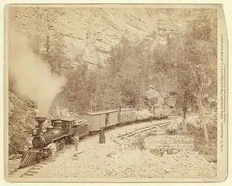 ![]() Train on the Black Hills and Fort Pierre Railroad in 1890 | |