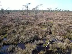 The Black Moor (German: Schwarzes Moor) is an important internationally recognised wetland located in the Bavarian Rhön Mountains at the tripoint of the German states of Hesse, Thuringia and Bavaria. It is part of UNESCO's Rhön Biosphere Reserve and has an area of 66.4 hectares. It is thus the largest bog complex in the Rhön. Much of the moor is a largely undisturbed and intact raised bog. It is part of the Europe-wide conservation system, Natura 2000, and one of the most important raised bogs in Central Europe. The Black Moor lies on the watershed between the Rhine and Weser rivers. In 2007 the Black Moor was included in the List of the 100 most beautiful geotopes in Bavaria.
