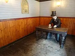 During Victorian times, people were seeking out new healthy holiday resorts, ideally near the coast. As the railway network was getting closer and closer to the south coast, the Isle of Wight was becoming an increasingly attractive holiday destination. Alexander Dabell, the founder of the park, soon realised the business potential of this, trying various ventures. In 1839 Alexander became friends with a publican who had recently built a hotel at Blackgang, which now forms the Chine Cafe (formerly Pirates' Pantry restaurant) and administration offices.[1] After studying the gault and chine gorge, he knew instantly that gardens could be set up that would appeal to the Victorians as a romantic holiday destination. This along with the increasing popularity of the adjacent Sandrock Spring (a chalybeate spring) led to Alexander concluding a lease for the site in 1842 and the establishment of Blackgang Chine amusement park in 1843. The area was then opened up to the public with pathways built down to the ravine and gardens landscaped on the cliffs. Steps were built to give access to the beach from the lower road. Since the park was opened, it has remained a family business, with the descendants of Alexander Dabell owning it ever since.[3][4] The park's claim to have been established in 1843 would make it the oldest theme park in the United Kingdom. Its initial theme of a general-purpose scenic and curiosity park led to one of its most famous attractions, a large whale skeleton, which had been washed up near the coast of The Needles in 1842, and is still a showpiece today.[1]