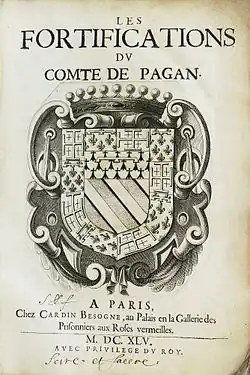 Blaise François Pagan (1603–1665) was a French soldier and military engineer who served in the army of Louis XIII. His military career ended in 1642 when he lost his sight and in 1645, he published Les Fortifications; this became the dominant text of its era on military fortifications and significantly influenced Sébastien Le Prestre de Vauban.[1]