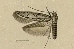 The wingspan is 12–14 mm. The forewings are pale stony grey, sparsely sprinkled with fuscous and rust-brown scales. The hindwings are grey.[2]