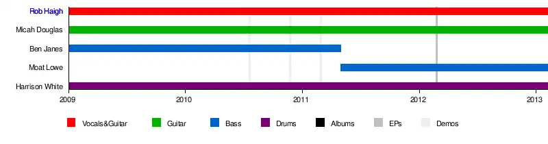 - Rob Haigh – vocals, guitar (2009–2013)