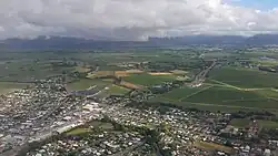 Blenheim (/ˈblɛnɪm/ BLEN-im; Māori: Waiharakeke[2]) is the most populous town in the region of Marlborough, in the north east of the South Island of New Zealand. It has an estimated population of 30,300 as of June 2024.[1] The surrounding Marlborough wine region is well known as the centre of the New Zealand wine industry. It enjoys one of New Zealand's sunniest climates, with warm, relatively dry summers and cool, crisp winters.
