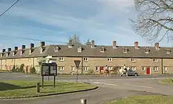 Bletchingdon village was originally built around a green, but the houses on the north side were demolished when Bletchingdon Park was extended. The earliest known record of a pub in the parish dates from 1616. By the 1670s there was one called the Angel and Crown. In 1703 Bletchingdon had three pubs: the Green Man, the Red Lion and the Swan. The Red Lion survived until 1951, when it lost its licence.[5] The village's last surviving pub is The Blacks Head Inn. It is a 16th-century building that was enlarged in the 17th and 18th centuries.[17] It was originally called The Blackamoor Head, probably after a black man-servant of the local Dashwood family, who is buried in Kirtlington chapel.[5] Other theories about this pub are that it was named for battle honours attributed to a local military family, or perhaps in honour of King Charles II ("the black boy"), or it could be to do with livery[18] of royal coach companies that stopped here.