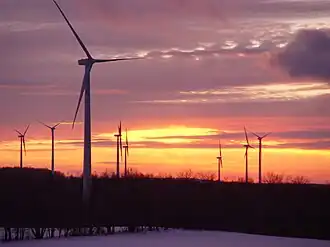 The Bliss Wind Farm is a 100.5 megawatt wind energy project built by Noble Environmental Power, that opened May 18, 2008.[2] The $210-million project is in Eagle, New York in Wyoming County, and consists of 67 General Electric 1.5 megawatt turbines.