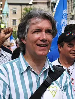Gilles Duceppe resigned as party president and leader immediately after the 2011 federal election in which the Bloc lost 44 of its 47 seats, including Duceppe's.[3] Daniel Paillé was declared the winner of the subsequent leadership election on December 11, 2011, defeating Maria Mourani on the second ballot with 61.28% of the vote. A third candidate, Jean-Francois Fortin, was defeated on the first ballot.[4][5]
