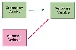 In the examples listed above, a nuisance variable is a variable that is not the primary focus of the study but can affect the outcomes of the experiment.[3] They are considered potential sources of variability that, if not controlled or accounted for, may confound the interpretation between the independent and dependent variables.