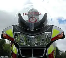 A blood bike is a specialist motorcycle modified for use as a courier vehicle for the prompt transportation of urgent and emergency medical items; primarily including blood, and also including X-rays, tissue samples, surgical tools, human milk, spinal fluids, drugs, and documentation; between hospitals and other healthcare facilities.[1][2][3]