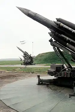 1. ^ Beam riding missiles have the disadvantage of not being able to "lead" their target unless a second radar beam is used, as in Nike Ajax. They also have the problem that radar signals spread out with increasing distance, making the missile increasingly inaccurate at longer ranges. Which of these two issues, or possibly both, is the reason for this switch is not mentioned in available sources.