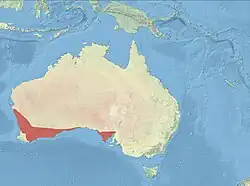 The range of the blue-breasted fairywren is inland south-western Western Australia and the Eyre Peninsula of South Australia. Originally it was thought to only occur in Western Australia, but was later found in the more eastward area, where it was for some time mistaken for one of the many forms of the variegated wren. The distribution of the species is unusual in that there is a gap in their range of three hundred kilometres; from the head of the Great Australian Bight to their reappearance on Eyre Peninsula.