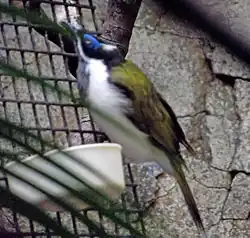 Keeping blue-faced honeyeaters in an aviary in New South Wales requires a Class 2 Licence. Applicants must show they have appropriate housing, and at least two years' experience of keeping birds.[52] Blue-faced honeyeaters are exhibited at Lincoln Park Zoo in Chicago,[53] Philadelphia Zoo,[54] Columbus Zoo and Aquarium (Ohio), Birmingham Zoo (Alabama), and Tracy Aviary (Utah),[55] Woodland Park Zoo (Seattle)[56] Children's Zoo at Celebration Square (Michigan) in the United States,[57] Marwell Zoo in England, Edinburgh Zoo in Scotland and Taronga Zoo in Sydney, Australia.[58]