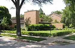 The Bell/Hendriks house was designed and construction in 1947 for the Prize Homes competition which was sponsored and promoted by the Chicago Tribune,[44] and several thousand persons toured the "modified Colonial" home when it was built, with many of the visitors' comments reported in the newspaper during the month the house was open to the public for tours.[45] Opening ceremonies were broadcast over WGN radio, and plans of the house and of the other twenty-three prize-winning designs from the competition were the subject of an exhibition at the Art Institute of Chicago the previous year.[46]