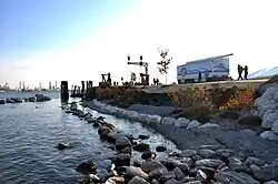 The entire stretch of shoreline was given to the Community Foundation by local philanthropists James and Suzanne Acheson in 2011. In return for the gift, the Foundation promised to find the funding necessary to finish the restoration and rehabilitation of the shoreline, and promised to make it available to the public forever. In essence, the Foundation has turned the shoreline into a "public" park.[2] The shoreline encompasses more than 70 acres of what is now prime waterfront property. The property, known as Desmond Landing,[3] hosts the maritime center, a farmers' market in the summer, fireworks displays and other events.[4] The Blue Water River Walk features offshore reefs, new wildlife habitat, a restored ferry dock and a pedestrian trail. St. Clair County Parks will be developing a wetlands area at the south end of the trail, and the City of Port Huron has expanded the Bridge to Bay Trail to connect with the Blue Water River Walk Trail.[4] In Fall of 2012, the Community Foundation, the Blue Water Land Fund and other federal, state and local officials held a ground–breaking ceremony at the site of the Blue Water River Walk.[5] Senator Debbie Stabenow[6] and Congresswomen Candice Miller addressed the crowd and expressed their support of the project.[7] An official grand opening of the River Walk was held on June 7, 2014.[8]