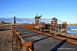 Along the Blue Water River Walk is an old railroad ferry dock. This ferry dock has been completely restored and made available as a place to view the St. Clair River. The decking is made of Brazilian walnut and new railings, lighting, and stairs have been added. An old functioning railroad signal light welcomes visitors to the ferry dock.[1]