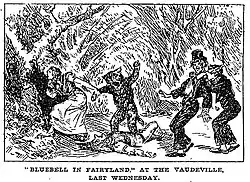 First produced in 1901 in London, Bluebell in Fairyland was a hit, running for 300 performances.[1] The piece provided inspiration for J. M. Barrie's stories of Peter Pan.[2]