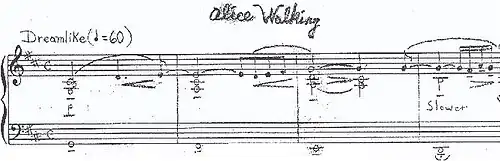 Between 1973–74 Boury’s interest toward film music led him to California. During his stay in California Boury was inspired by the beautiful scenic of the canyons, the ocean, and the variety of foliage. Therefore, he composed this piece, which was a reference to "Alice in Wonderland."