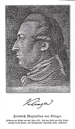 Klinger found a connection to the Boßler family through his paternal grandmother's line.[45][46] Both descend from the gunsmith Christian Boßler.[47] The baltic knighthoods itself points out that Klinger was married to an illegitimate daughter of the Russian empress Catherine the Great.[48]
