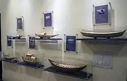 Boat Museum presently houses "46 wooden replicas of boats" that depicts Bengal's boat heritage.[17] From cargo boats of Sunderbans, coastal fishing boats, and popular flat-bottomed boats of Northern Bengal to all-purpose boats known as dinghi have been featured in the museum.[5] The museum also exhibits a replica of the poet Rabindranath Tagore's boat called Padma and a replica of a boat from the Mohenjo-daro era.[1][16]