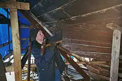 Damaged boat mid-reconstruction; carvel planking partially removed