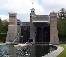 | Canal du Centre boat lifts | Hainaut, Belgium | 1888–1917 | Vertical caisson | 360 tons/350 tons | 40.1 m × 5.06 m × 2 m 132 ft × 17 ft × 7 ft |