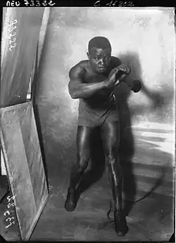 Bob Scanlon (7 February 1886 – date of death unknown) was an American boxer who partook in over 125 bouts and spent three years fighting in the French Army during the First World War. He was born in Mobile, Alabama, as Benjamin Lewis and changed his name to Bob Scanlon at an unknown date.[2] He found success as a boxer in Europe, with most of his fights happening in England or France.[3] He lived in Paris for most of his life. He was one of the first Americans to join the French Foreign Legion after the start of the First World War.[4][5]