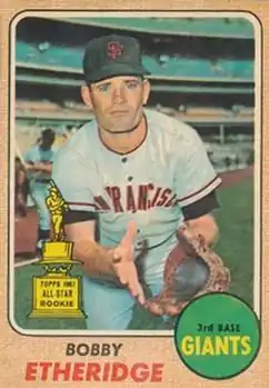 For the season, Etheridge batted .226 with one home run and fifteen runs batted in (RBI) for the second place Giants. Though he struggled for playing time behind slugger Jim Ray Hart at third base, Etheridge was named a rookie All-Star by Topps.