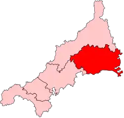 1918–1950: The Boroughs of Bodmin, Fowey, Liskeard, Lostwithiel, and Saltash, the Urban Districts of Callington, Looe, and Torpoint, the Rural Districts of Liskeard and St Germans, in the Rural District of St Austell the parishes of St Sampson and Tywardreath, and part of the Rural District of Bodmin.