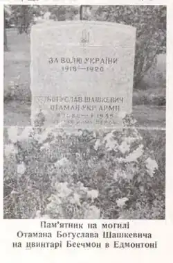 In November 1918, after the November Revolution, in Lublin, the 58th Ukrainian Infantry Regiment, which included Shashkevych, rose in revolt against the Poles, but could not withstand the onslaught of the Polish Armed Forces and withdrew to Lviv. On December 12, Bogusław Shashkevych led the team of the 9th Belz-Uhniv Brigade. By order of Colonel Viktor Kurmanovych, on January 7, 1919, B. Shashkevych's group tried to stop the advance of Polish troops with a counterattack from the Pier but it did not succeed.[3] During the storming of Belz in February–May 1919, he was in the village of Parkhachi with the brigade command. In May 1919 he headed the First Division of the Galician Army.