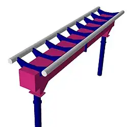 Water brakes were first introduced on SheiKra at Busch Gardens Tampa Bay in 2005.[38] Water brakes can only be used when a splashdown element, in which a body of water surrounds a section of track, is present within the layout of the roller coaster. When scoops on the last car of each train come in contact with the surrounding water, the train slows down and the water is sprayed several feet into the air behind it.[39]