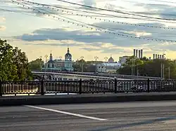 Bolshoy Ustinsky Bridge (Russian: Большой Устьинский мост) is a steel arch bridge that spans Moskva River near the mouth of Yauza River, connecting the Boulevard Ring with Zamoskvorechye district in Moscow, Russia. It was completed in May 1938 by V.M.Vakhurkin (structural engineering), G.P.Golts and D.M.Sobolev (architectural design).[1][2]