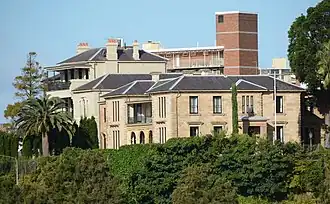 In June 1941 it was acquired by the Commonwealth Government for naval use. Throughout the period of Commonwealth ownership the building with Tarana served as Sydney Naval Fleet Base Headquarters (offices), Eastern Australian Command. During the war parts of the building's interior were returned to a form basically similar to that in which they existed prior to acquisition by the Sydney Harbour Trust in 1917, except for the south-east wing and their servant's wing, which were almost totally removed.[10][1]