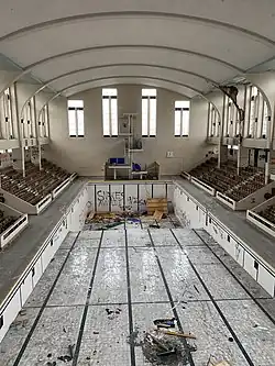 The community group Save Bon Accord Baths (later becoming Bon Accord Heritage SCIO) was established in 2014 with the aim of reopening the complex for swimming.[15] In September 2020, the group held an Open Weekend, allowing the public entry to the building for the first time since its closure in 2008; more than 1,600 people visited the building over two days. Since then, open days have been held twice a year, including Doors Open Day in 2023 .[16] Since 2022, the annual Aberdeen Jazz Festival has staged musical performances at the Baths under the title "Soundbath".[17]