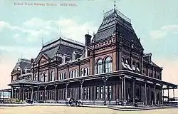 Named for its location on Saint Bonaventure Street,[1] now Saint Jacques Street, the first Bonaventure Station was built in 1847 as the main terminal for the Montreal and Lachine Railway. In 1862, the Grand Trunk Railway (GTR) made an agreement to share the station, thereby obtaining a more centrally located Montreal terminal than their existing station near the Victoria Bridge approach. The GTR leased the Montreal and Lachine Railway in 1864 and purchased it outright in 1867, thus becoming owner of the station.[2]