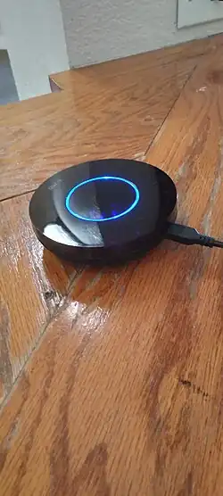 Bond Bridge is a Wi-Fi device that communicates with infra-red or RF controlled devices, such as ceiling fans, shades, and fireplaces. These devices often come with a battery powered remote control. The bond bridge receives commands form a network port, and it forwards the commands to the remote controlled device by simulating the signals the remote control would produce.[1][2][3]