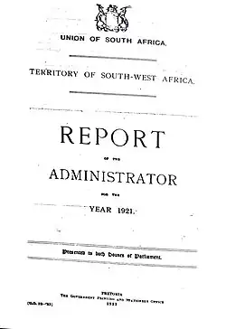 - ^ Report of the Administrator of South West Africa for the Year 1920, 1921