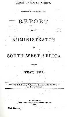 - ^ a b c d Report of the Administrator of South West Africa for the Year 1922, 1923
