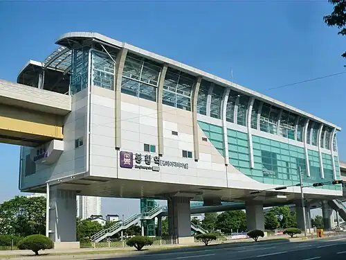 Bonghwang Station (Korean: 봉황역) is a station of the BGLRT Line of Busan Metro in Jeonha-dong, Gimhae, South Korea. The station is located at the riverside.