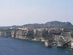 Bonifacio is located directly on the Mediterranean Sea, separated from Sardinia by the Strait of Bonifacio. It is a city placed on the best and only major harbour of the southern coast and also is a commune covering a somewhat larger region including the offshore Isles Lavezzi, giving it the distinction of being the southernmost commune in Metropolitan France. It lies closer to the capital cities of 20 other countries in Europe and Africa than its own, Paris. The commune is bordered on the northwest by the canton of Figari and has a short border on the northeast with the canton of Porto-Vecchio. The combined border runs approximately from the Golfe de Ventilegne on the west to the mouth of the Golfu di Sant'Amanza on the east. The coastline circumscribed by the two points is about 75 kilometres (47 mi). Highway N198 runs north along the east coast and N196 along the west.[4]