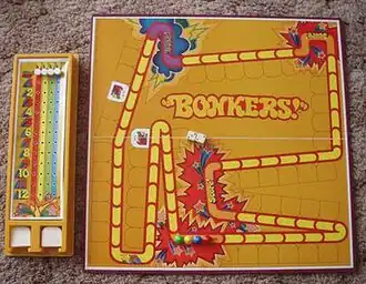 Bonkers! (also known as This Game is Bonkers!) is a race-style board game designed by Paul J. Gruen and produced first by Parker Brothers, later by Milton Bradley, and briefly reissued by Winning Moves.[1] The object is to be the first player to score 12 points by adding instruction cards to the empty spaces in an attempt to move to several scoring stations. The game's slogan (for all versions) is "It's Never the Same Game Twice!"