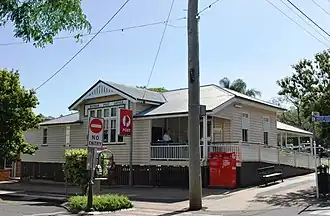 The original quarters component is attached to the western side of the post office building, and is set back from the Park Street frontage. Vehicular access to the site is via an asphalted driveway at the northwest corner which is enclosed by a non-original chainwire fence. The site is flanked to the west by the Boonah State School and to the south by mixed commercial and retail development. The precinct is defined by the double-storey Victorian-era Commercial Hotel on the opposite corner.[1]