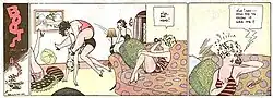 ![]() Edgar Martin's Boots and Her Buddies (June 8, 1930). From 1926 to 1931, the Sunday strip appeared in this abbreviated form as a topper strip, positioned directly above Gene Ahern's Our Boarding House. | |