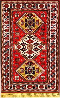 Borchaly (Azerbaijani: Borçalı) describes a sub-category within the Gazakh group of Azerbaijani[1] carpets, even though the region from which they originate is now within Georgia.[2][3] The name of this carpet is associated with the name of the Borchaly region, located to in southeastern Georgia close to the border of Gazakh district, Azerbaijan. Large villages of this region including Gurdlar, Akhurly, Kachagan, Sadakhly (Sashikhly), Dashtepe and Lembeli were once famous for carpet weaving,[4] though in recent decades the art of carpet weaving has almost entirely died out,[5] leaving only two known villages where Borchaly style carpets are still woven: Kosalar and Mughanlo (formerly Iormughanlo).[6] The population of Borchaly (now known as Marneuli) including the above-mentioned villages consists mainly of ethnic Azerbaijanis.[1][7]