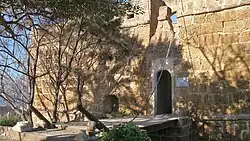 The tower is encircled by a moat approximately 3 meters deep, which can be crossed from the southeast side via a drawbridge. This bridge, measuring 5 meters in length and 1.5 meters in width, connects the rear entrance of the tower to the bottom of the moat. The fort was adjoined with another fort called "Bordj al-Ingliz" (Arabic: برج الإنجليز) which was equipped with a moat as well.[19]