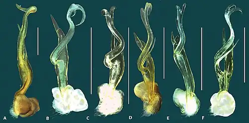 Individuals have twenty body segments, each smooth and unsculptured, with a distinct waist between the first and second tergites (prozonite and metazonite) of each segment. The paranota (keels), if present, are small and poorly developed. The largest species, B. capensis, reaches 22 mm (0.87 in) in length, and 2 mm in body width. Lengths of other species range from 7 to 10 mm. The body color of live individuals is dark brown, appearing black. Biologist William Shear described the genus Boreohesperus and its first known species, B. capensis, in 1992 based on specimens collected from cave entrances in the Cape Range in North West Cape, Western Australia.[1] Five new species were described in 2013, including one endemic to Barrow Island. The six species are distinguished primarily by differences in gonopod structure, and to a lesser extent, body size.[2]