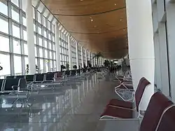 - Four movable boarding bridges connect the terminal building to aircraft.