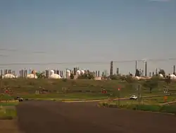 Today, Borger remains an important shipping point for agricultural produce, as well as for the petroleum products produced there. It is the home of the world's largest inland petrochemical complexes. Chevron-Phillips Chemical Company produces specialty chemicals. Solvay produces RYTON PPS plastics. Phillips 66 Petroleum Company processes crude oil and natural gas liquids. Agrium manufactures nitrogen fertilizer in its Borger plant. Borger also has Sid Richardson Carbon Company, which produces rubber-grade carbon black used to strengthen rubber tires, and Orion Engineered Carbons, Inc., which produces a variety of carbon blacks at its Borger facility. The original townsite is said to have been founded around 1898 by John F. Weatherly, a rancher who built a dugout and gave the future town the grandiose name of Granada. Weatherly's wife wanted it named after her former home—a town in West Virginia called Isom.