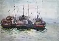 Although for the artist the sea was not only primordial beauty imbued with inimitable harmony, but also a dwelling place of the manmade objects- the ships. In depiction of the latter he predominantly employs graphic techniques: coal sketching, graphite pencil, drypoint print, etching and linocut print. He is unsurpassed as regards compositional variations in depicting ships or fishermen's life. Every sheet is representative of the original nonrecurring compositional scheme, the most corresponding to realizing each concrete artistic idea.